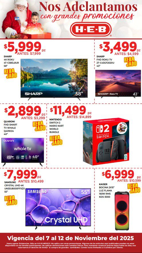 Acabo de ver que HEB ya publicó su folleto Nos Adelantamos con Grandes Promociones por el Pre Buen Fin 2025, con las ofertas tendrán del 07 al 12 de noviembre de 2025 o hasta agotar existencias; algunas aplican solo en sucursales físicas y otras también en su tienda en línea heb.com.mx; encontrarás ofertas en sus categorías Combo Loco (producto Gratis en la compra de artículos participantes); Rebajado (descuentos o precios especiales en mercancía seleccionada); Segundo a Mitad de Precio (en la compra de 1 te dan el 2º a mitad de precio) y el Segundo artículo al 70% (el descuento aplica en el producto de menor precio). Éste es el folleto: