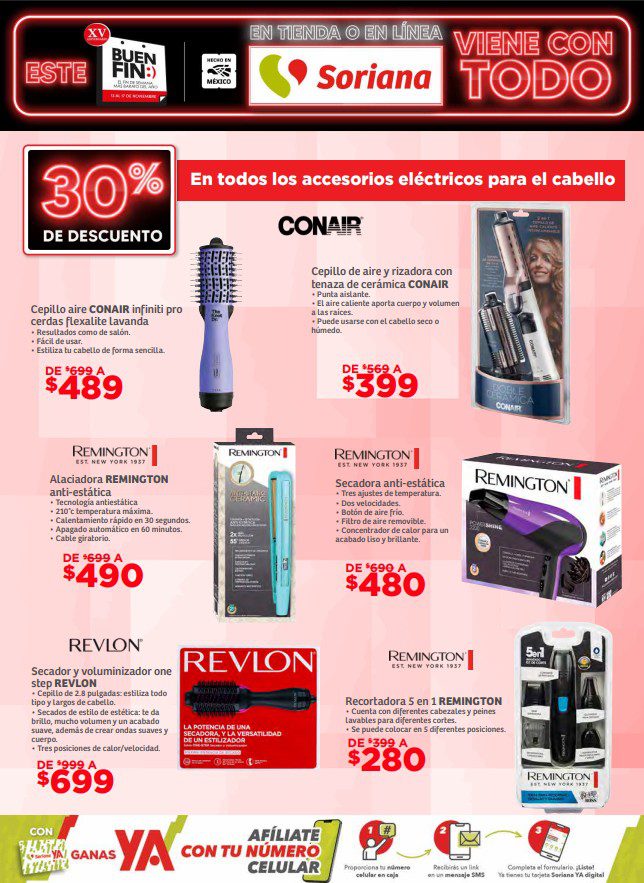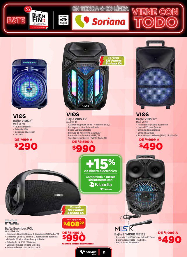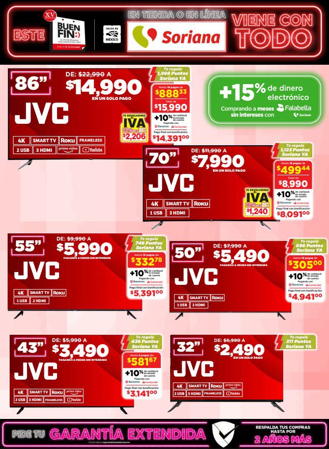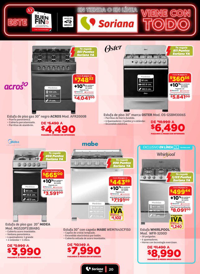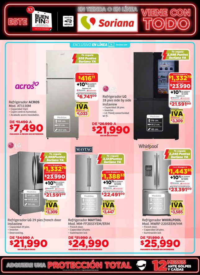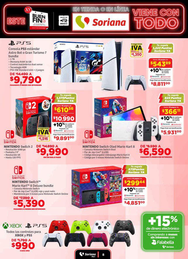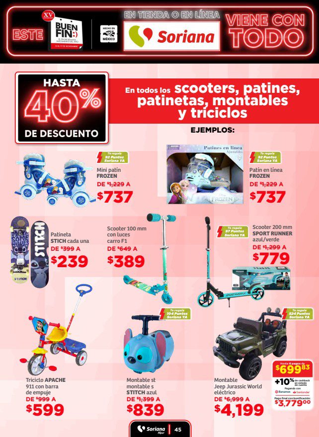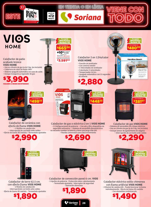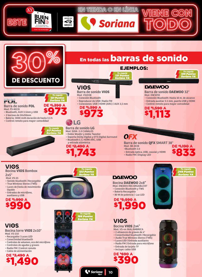 Te comparto el folleto Este Fin Soriana Viene con Todo por el Buen Fin 2025 de Soriana Híper, que contiene sus ofertas válidas del 13 al 17 de noviembre de 2025 o agotar existencias, y en el que te devolverán el IVA en Dinero electrónico Soriana Ya, Puntos Dobles Soriana Ya en todas tus compras, un 2×1, 3×2 (el producto GRATIS será el de igual o menor precio), hasta un 50% de descuento, Precios especiales, hasta 18 Meses sin intereses y Cashback, Devoluciones o Bonificaciones con tarjetas participantes; las ofertas son válidas en artículos seleccionados y aplican en su tienda en línea soriana.com y en sus sucursales físicas participantes.