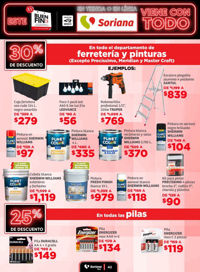 - Todo el Departamento de Ferretería y Pinturas (excepto Precíssimo. Meridian y Master Craft)