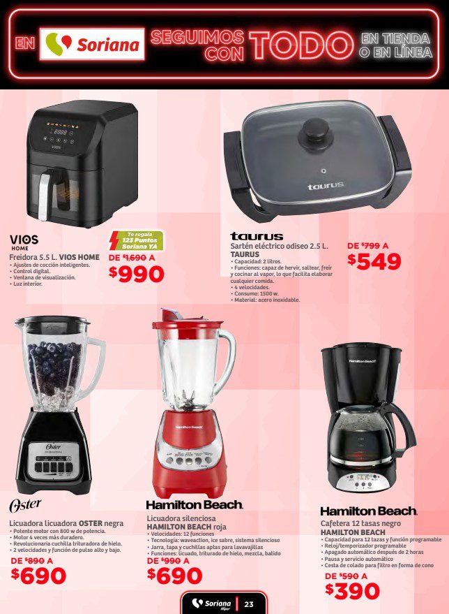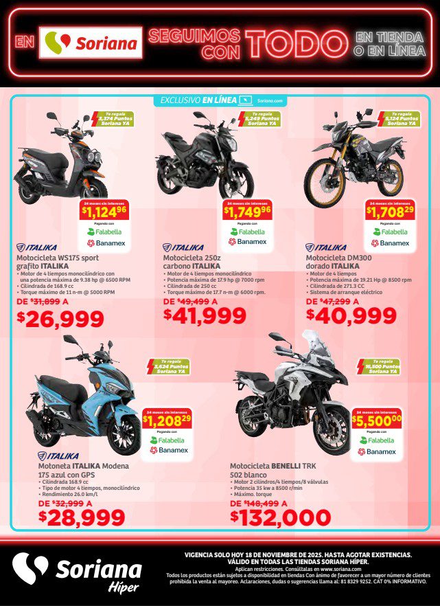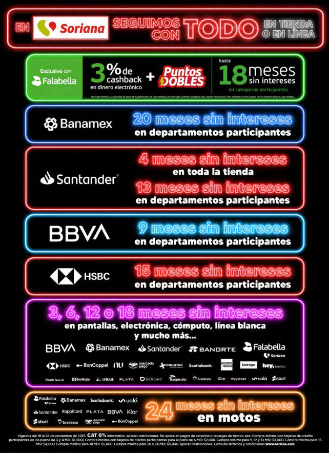 Te comparto el folleto Seguimos con Todo por el Buen Fin Extendido 2025 de Soriana Híper, que contiene sus ofertas válidas solo por hoy 18 de noviembre de 2025 o agotar existencias, y en el que encontrarás un 2×1, 3×2 (el producto GRATIS será el de igual o menor precio), hasta un 50% de descuento, Precios especiales y hasta 18 Meses sin intereses con tarjetas de crédito participantes; las ofertas son válidas en artículos seleccionados y aplican en su tienda en línea soriana.com y en sus sucursales físicas.