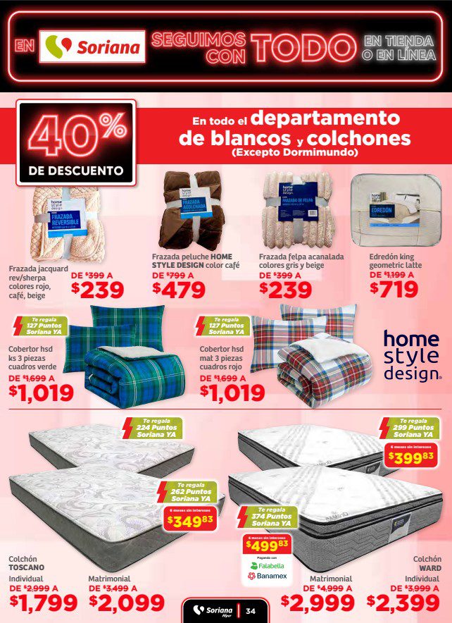 - Todo el departamento de Blancos y Colchones (excepto Dormimundo)