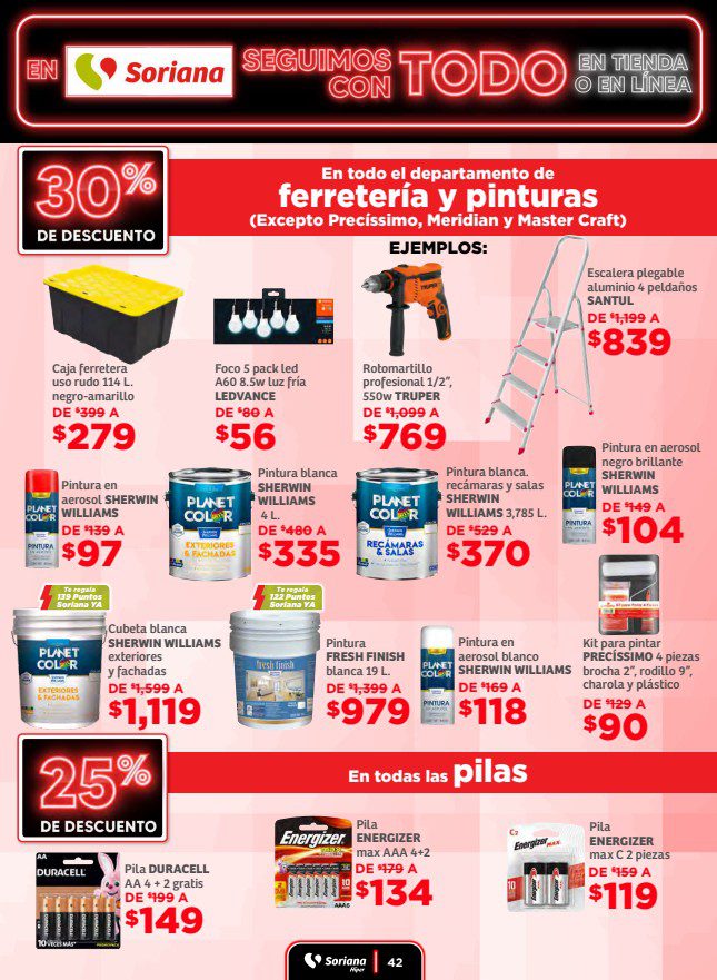 - Todo el Departamento de Ferretería y Pinturas (excepto Precíssimo. Meridian y Master Craft)