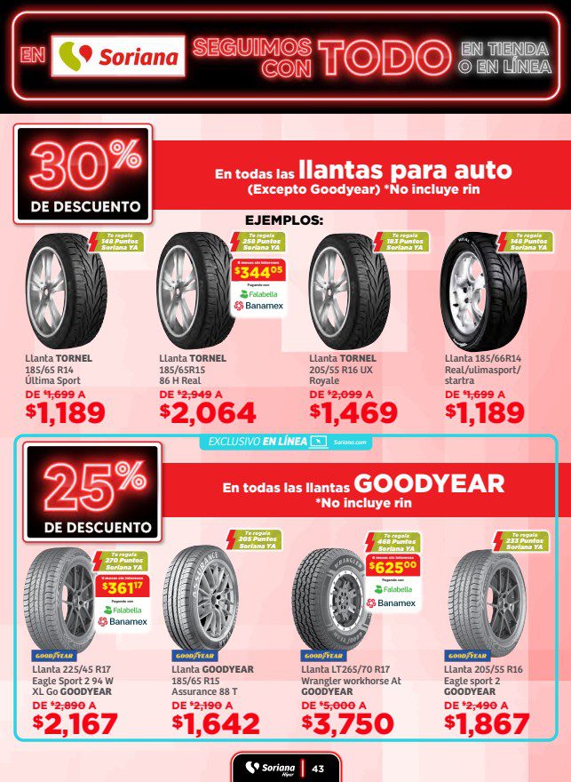 - Todas las Llantas para Auto (excepto Goodyear; no incluye Rin)