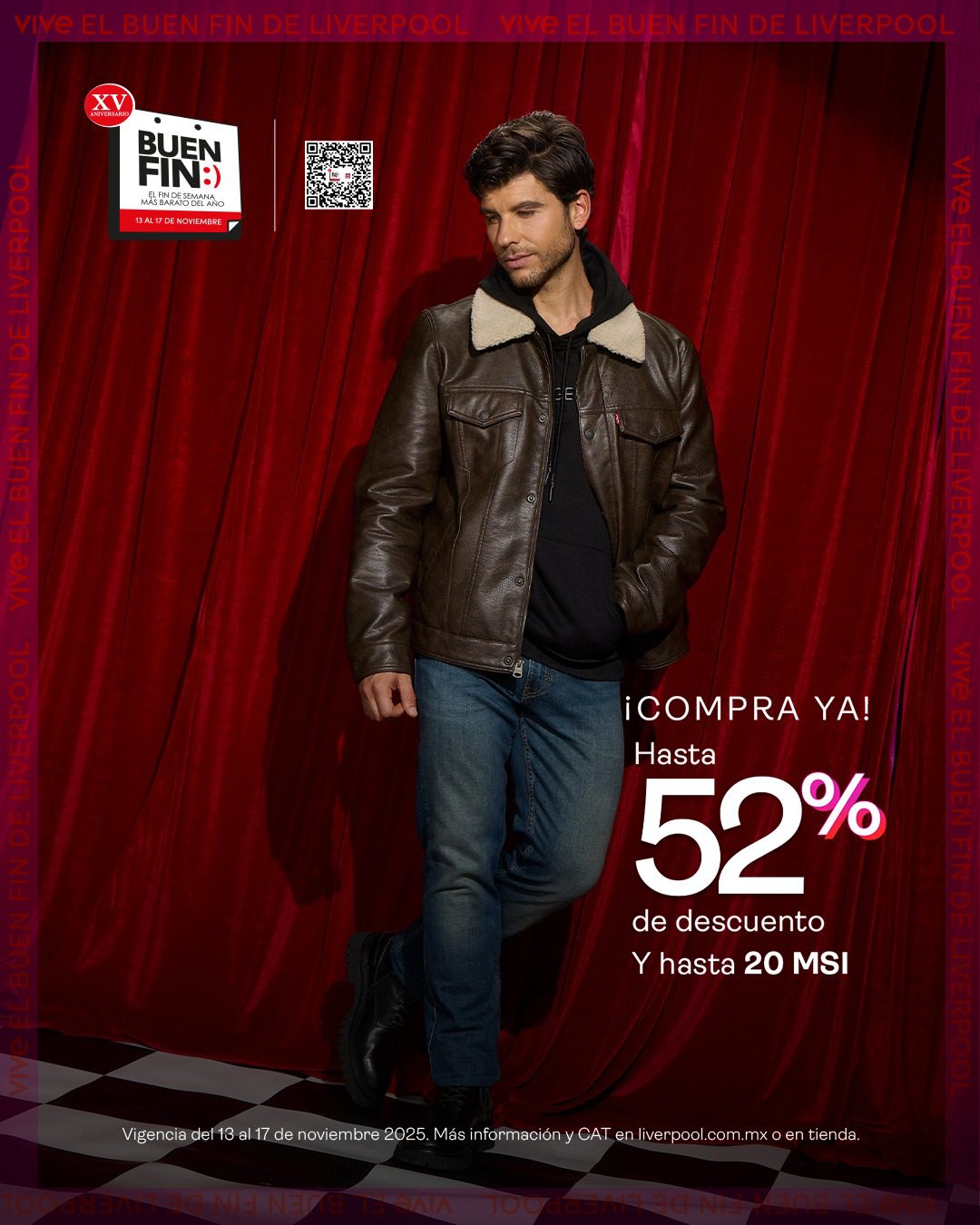Ya inició la promoción del Buen Fin 2025, y en las tiendas departamentales Liverpool, te ofrecen hasta un 60% de descuento, hasta 20 Meses sin intereses y puedes Comprar Ahora y Pagar hasta Febrero 2026 en artículos seleccionados; la promoción aplica en productos participantes, es válida en su tienda en línea www.liverpool.com.mx/tienda/home, en su App Liverpool Pocket (la pueden descargar la App desde este enlace: www.liverpool.com.mx/tienda/paginas/pocket) y en sus sucursales físicas y estará vigente del 13 al 17 de noviembre de 2025.