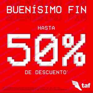 Las tiendas TAF serán parte del Buen Fin 2018. Estarán dando del 20% al 50% de descuento en mercancía seleccionada. Ubiquen su tienda más cerca dando click aquí. La promoción estará vigente del 15 al 25 de noviembre, así que estén al pendiente para correr a las tiendas. Si no conocen estas tiendas, ahí encuentran tenis de marcas como Nike, Puma, Reebok, Vans, Adidas, entre otras.