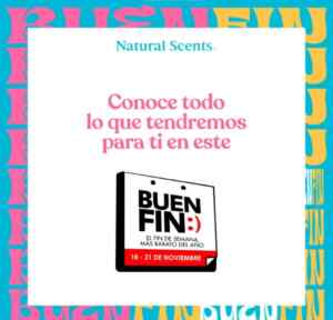 Las tiendas de cuidado corporal y facial, fragancias y difusores de aroma Natural Scents dieron a conocer sus ofertas por El Buen Fin 2022, en la que obtendrás hasta un 50% de descuento ó desde un 60% de descuento y más; la promoción estará vigente del 18 al 21 de noviembre de 2022, será válida en sus sucursales físicas, en su tienda en línea y en comercios participantes. Los descuentos que puedes obtener son éstos: