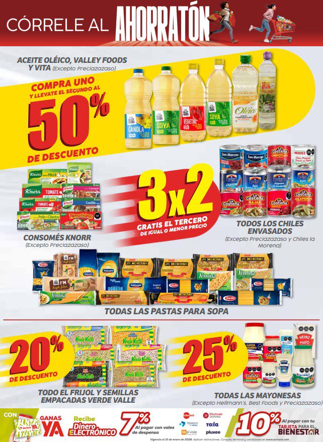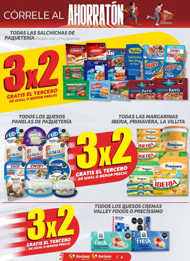 Hace un instante vi que Soriana Mercado y Express, publicaron su folleto Córrele al Ahorratón del Buen Fin 2025, que contiene sus ofertas válidas del 06 al 12 de noviembre de 2025, y en el que encontrarás un 3×2, en la compra de 1 te llevas el 2º con un 50% de descuento (en productos de igual o menor precio), Ahorros especiales en la compra de determinadas unidades, hasta un 35% de descuento y Precios especiales; las ofertas son válidas en artículos seleccionados y aplican en sus sucursales físicas participantes.