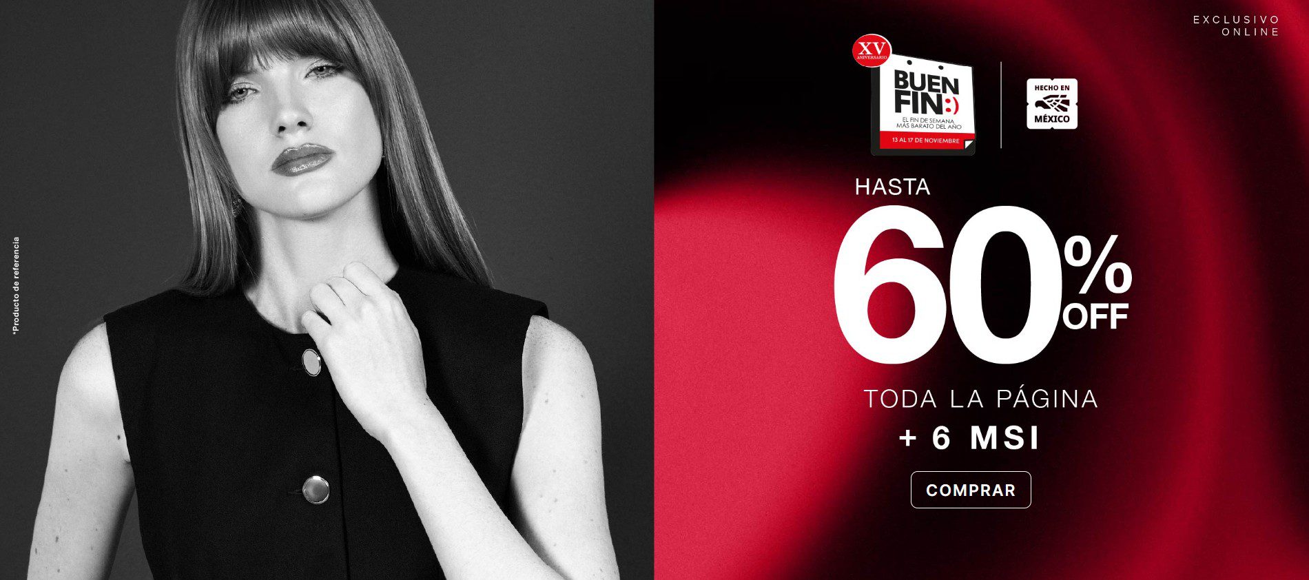 Únicamente por hoy y mañana (viernes 14 y sábado 15 de noviembre de 2025), en las tiendas de ropa, calzado y complementos de moda Studio F, con su promoción del Buen Fin 2025, te estarán dando hasta un 60% de descuento en toda su página; la promoción es válida de manera exclusiva en su tienda en línea www.studiofmexico.com.