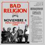 La Plaza Insurgentes y El Pabellón Polanco nos invitan al Concierto de Bad Religion con la Banda invitada Denalgas, que se realizará el próximo 04 de noviembre de 2019 en el Pepsi Center WTC de la CDMX; por cada $1,200 de compra acumulados en un máximo de 2 tickets del mismo día y por compras realizadas en los locales participantes de estos centros comerciales, recibiremos un Pase Doble; no aplica en pago de servicios ni de tarjetas bancarias y la promoción estará vigente del 25 de octubre al 04 de noviembre de 2019 o hasta agotar existencias.