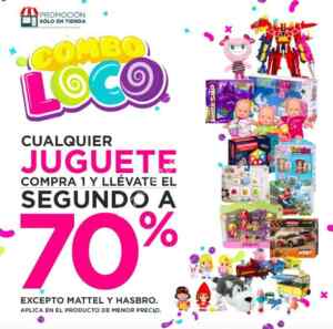 Esta primer semana de junio, los supermercados Heb tienen Comboloco en juguetes. Llévate un segundo juguete al 70% de descuento en la compra del primero. La promoción no incluye las marcas Hasbro ni Mattel y estará vigente del 2 al 8 de junio sólo en tiendas. El juguete con el descuento será el de menor valor.
