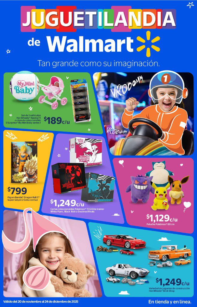 Acabo de ver el folleto “Juguetilandia” de las tiendas de autoservicio Walmart, que contiene sus ofertas en Juegos y Juguetes disponibles del 20 de noviembre al 24 de diciembre de 2025, en el que encontrarás Precios especiales, hasta 12 Meses sin intereses con tarjetas participantes y puedes Apartar tus Juguetes con el 5% de su valor; las ofertas aplican en productos seleccionados, son válidas en sus sucursales físicas y en su tienda en línea walmart.com.mx. Aquí les dejo el folleto completo: