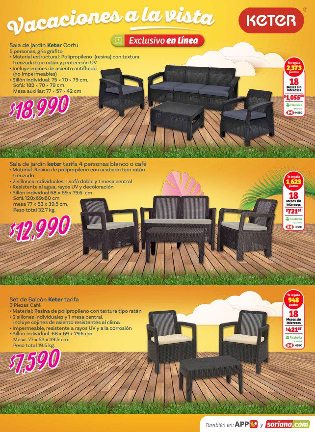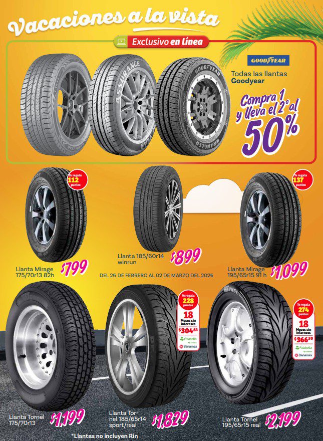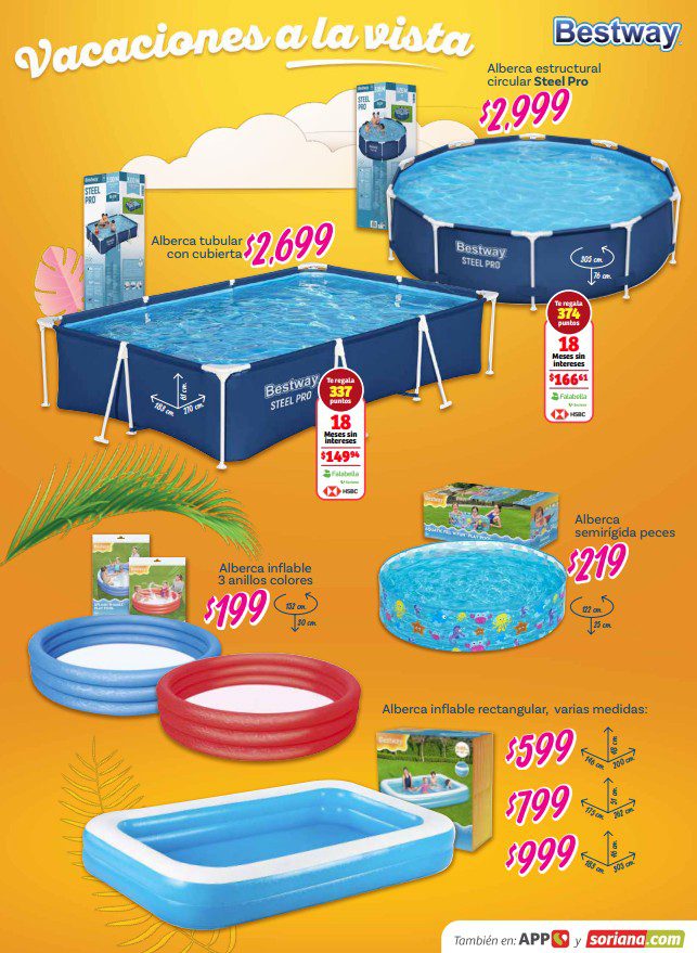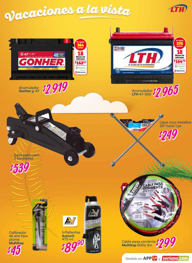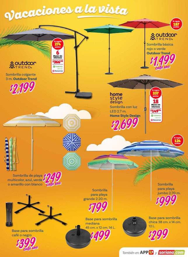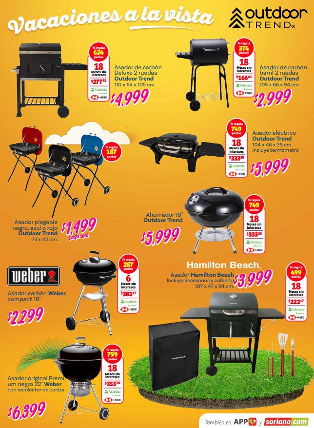Acabo de ver el folleto Vacaciones a la Vista de Soriana, que estará vigente del 26 de febrero al 14 de abril de 2026, en el que encontrarás que, en la compra de 1, te llevas un 50% de descuento en el 2º producto (de igual o menor precio), hasta un 20% de descuento, Precios especiales y hasta 18 Meses sin intereses con tarjetas participantes; las ofertas aplican en mercancía seleccionada de sus diversos departamentos y son válidas en sus sucursales físicas participantes y en su tienda en línea www.soriana.com.