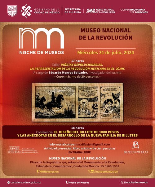 • Viñetas revolucionarias – Museo Nacional de la Revolución a las 17:00 y 18:00 horas. El acceso es GRATUITO y el cupo está limitado a 100 personas