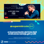 - Muchael Bublé – An evening with: 24 de abril en la arena CDMX; zonas naranja, gris y café