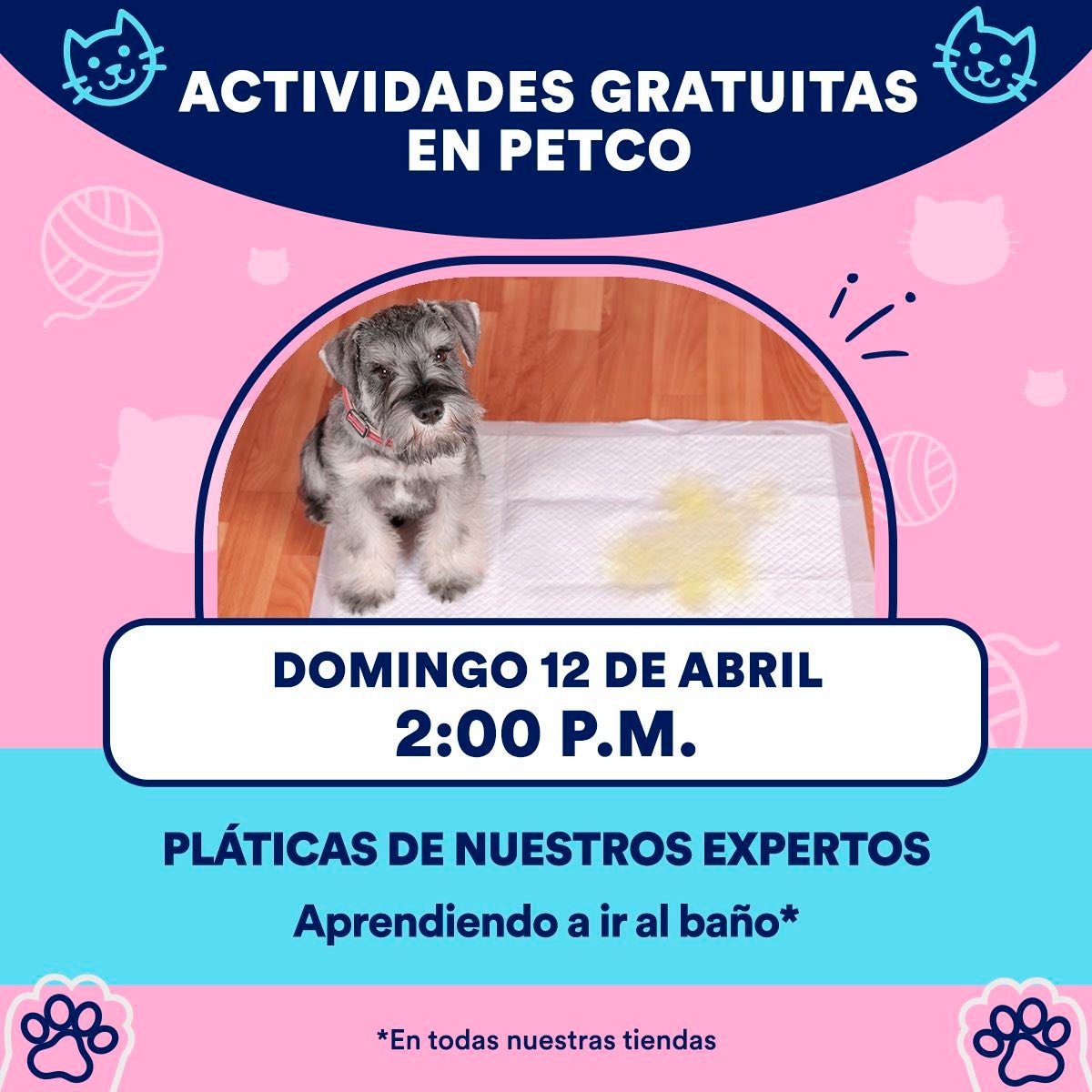 En las tiendas de productos para mascotas Petco, el sábado 11 y el domingo 12 de abril de 2026, estarán sus Actividades GRATUITAS: Cuidado que se nota en cada baño; ¡Juguetes para divertirse en exteriores!; Como evitar las bolas de pelo en Gatos; Aprendiendo a ir al baño y Curiosidades sobre los Camaleones; los seminarios se impartirán a las 14:00, 15:00 ó 16:00 horas en sus sucursales físicas: