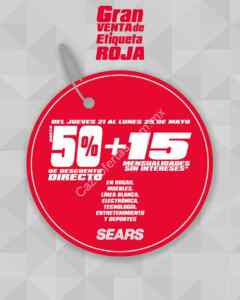 Hola amigos, les cuento que desde el 21 de hasta el 25 de mayo en Sears van a tener otra gran venta de etiqueta roja con hasta 50% de descuento directo en: