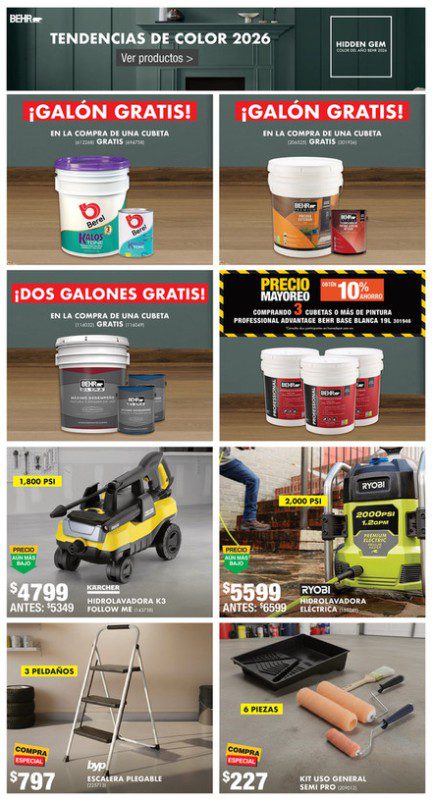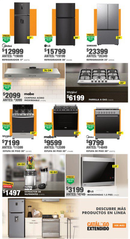 Si deseas consultar los precios de los productos que no lo muestran, lo puedes hacer en este enlace: homedepot.com.mx/folleto-electronico.