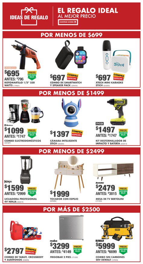 Si deseas consultar los precios de los productos que no lo muestran, lo puedes hacer en este enlace: homedepot.com.mx/folleto-electronico.