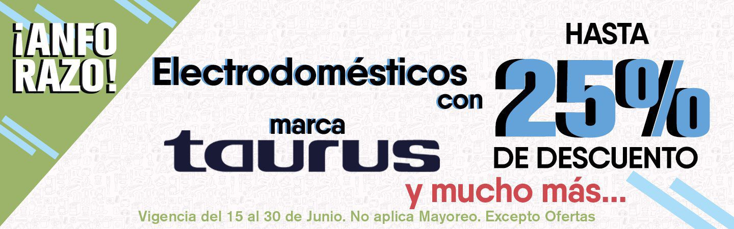 - Hasta 25% de descuento en Electrodomésticos de la marca Taurus