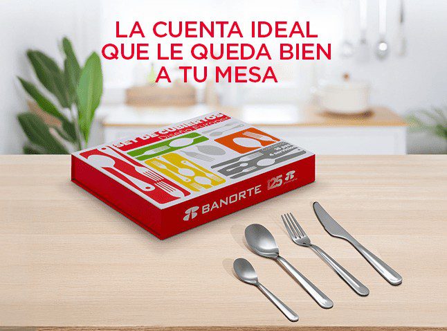 Estoy viendo la promoción La Cuenta Ideal que le queda Bien a tu Mesa de Banorte, en la que si Abres una cuenta o Incrementas tu Saldo con $15,000.00 (en una sola exhibición), y recibirás GRATIS 1 Set de Cubiertos, y adicionalmente, te darán $500.00 extra si cambias tu nómina a Banorte (debes contar con depósitos mensuales de $10,000.00 o superiores); la promoción aplica en cuentas: Enlace Personal, Mujer Banorte y Cuenta Preferente, es válida exclusivamente en sus sucursales físicas y cuenta con una vigencia del 30 de octubre al 13 de noviembre de 2025 o hasta agotar existencias.