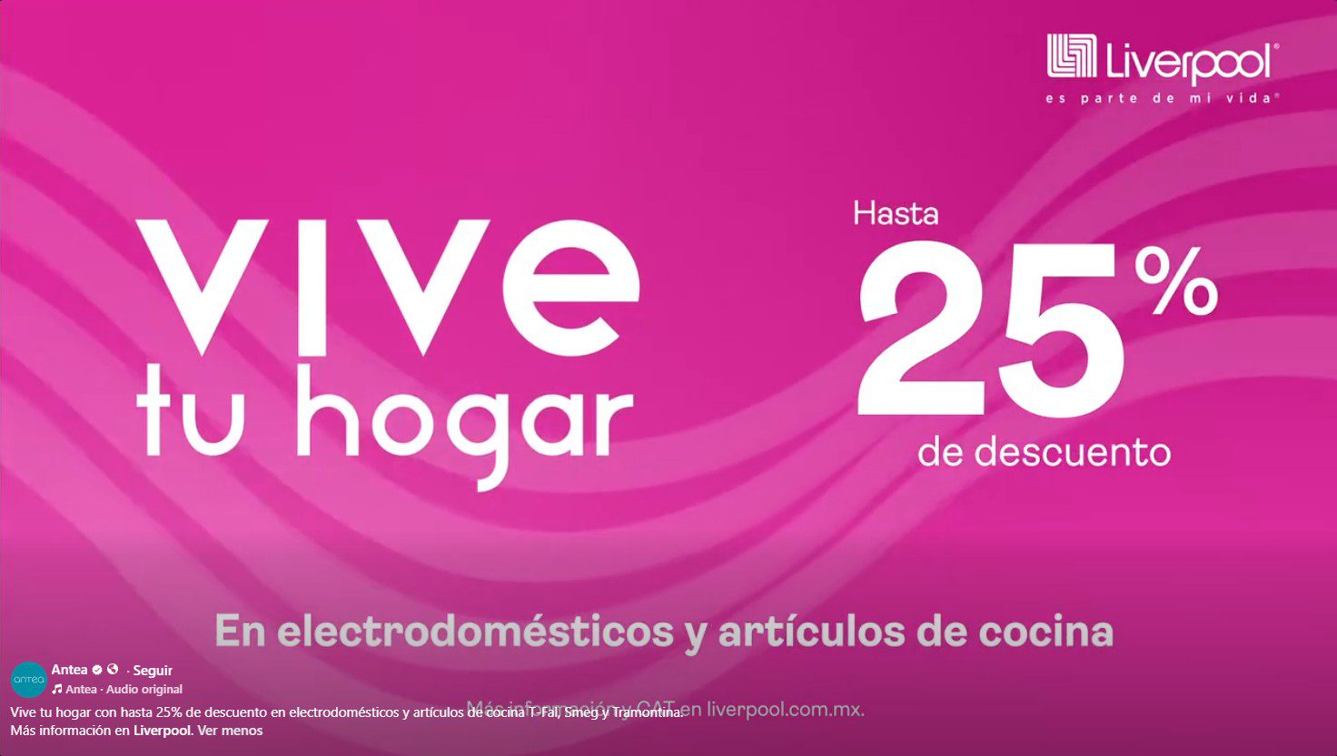 Te comparto la promoción Vive tu Hogar de las tiendas departamentales Liverpool, en la que encontrarás hasta un 25% de descuento en Electrodomésticos y Artículos de Cocina de las marcas T-Fal, Smeg y Tramontina y hasta 9 Meses sin intereses con tarjetas participantes, la promoción aplica en productos participantes, es válida en sus sucursales físicas, en su tienda en línea liverpool.com.mx y en su App Liverpool Pocket.