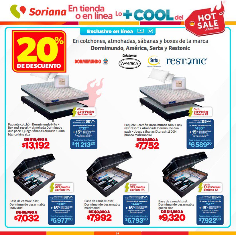 Te comparto el folleto Lo Más Cool del Hot Sale 2025 de Soriana Híper, que contiene sus ofertas válidas del 26 de mayo al 03 de junio de 2025 o agotar existencias, y en el que encontrarás hasta un 50% de descuento, hasta un 10% en Dinero electrónico Soriana Ya, Precios especiales, y Promociones Bancarias como hasta 24 Meses sin intereses, hasta un 20% de Bonificación o hasta un 25% de Cashback con tarjetas participantes; las ofertas son válidas en artículos seleccionados y aplican en su tienda en línea soriana.com y en sus sucursales físicas.