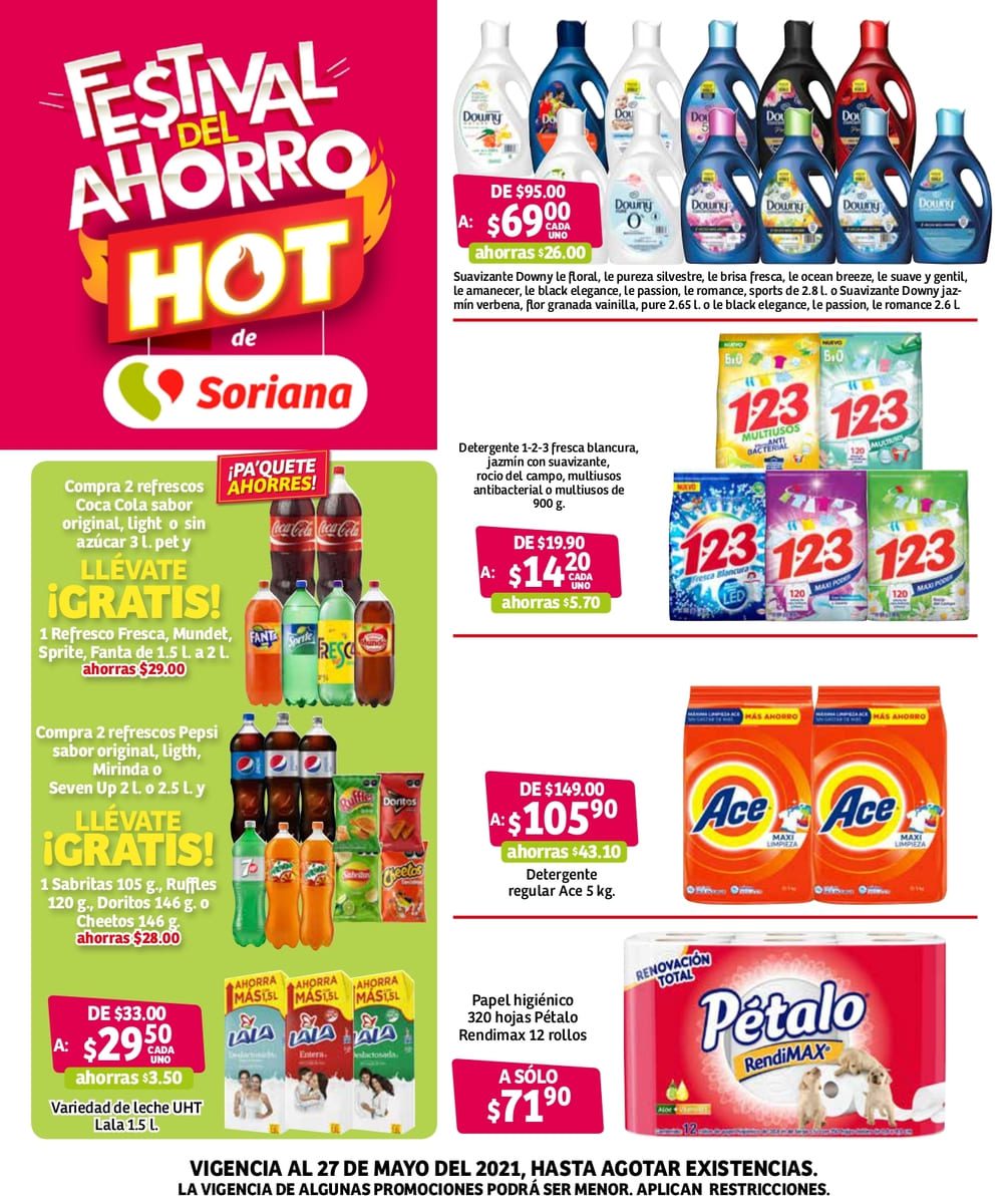 Únicamente por hoy jueves 27 de mayo de 2021 hasta agotar existencias, en Soriana Híper y Súper estará vigente su folleto de los “Días Rendidores más Hot”, por el Hot Sale 2021, en el que encontrarás que en la compra de 1, te llevas el Segundo con un 50% de descuento (en productos de igual o menor precio), Producto Gratis en la compra de artículos seleccionados, hasta un 30% de descuento, hasta 18 Meses sin intereses y Precios especiales en mercancía seleccionada de diversos departamentos; las ofertas son válidas en sus sucursales físicas a Nivel Nacional.