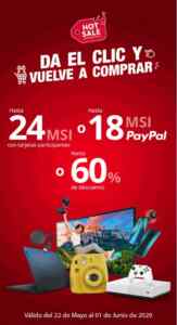 Mañana 22 de mayo inicia el Hot Sale 2020 y en Sanborns te estarán dando hasta 60% de descuento en productos seleccionados ó hasta 24 meses sin intereses si pagas con tarjetas participantes ó hasta 18 meses sin intereses si pagas con Paypal; la promoción estará vigente hasta el 01 de junio de 2020 y aplica exclusivamente en su tienda en línea sanborns.com.mx