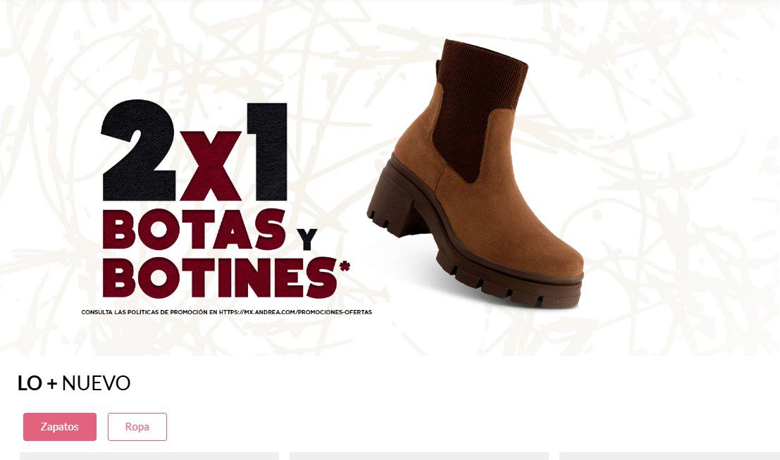 Acabo de ver la promoción Duplica tu Estilo de la tienda de zapatos, ropa, accesorios de moda Andrea, en la que estarán dando un 2×1 en Botas y Botines; la promoción aplica en botas y botines seleccionados de la marca Andrea, es válida en su página de Internet mx.andrea.com/coleccion-productos/botas-botines-2×1 y estará vigente del 01 al 31 de octubre de 2025 o hasta agotar el inventario seleccionado o lo que suceda primero.