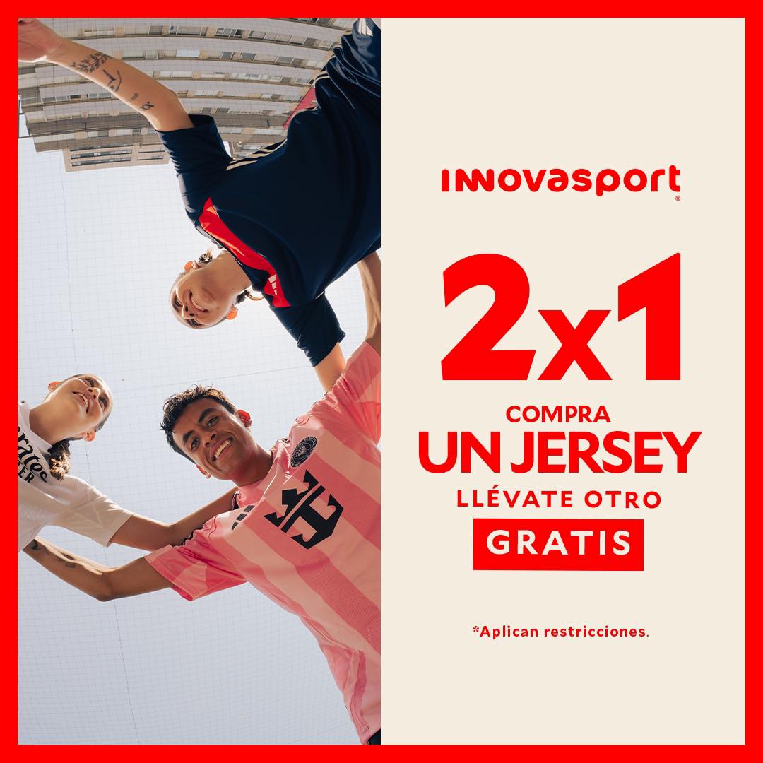 En esta oportunidad, las tiendas de ropa, calzado y accesorios deportivos Innovasport anunciaron una promoción, en la que te darán un 2×1 en Jerseys (en la compra de 1, te llevas GRATIS el 2º); la promoción aplica en productos participantes, es válida en su tienda en línea innovasport.com y en sus sucursales físicas.
