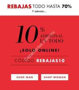 La tienda en línea Cortefiel nos ofrece esta promoción. Como sabemos, encontramos toda la tienda con hasta 70% de descuento, pero además, si utilizamos el cupón REBAJAS10 nos hacen, además, un 10% de descuento sobre el total de la cuenta. Acá esta la página, para que realicen sus compras (es la página internacional pero envían a México): https://goo.gl/88kDOj