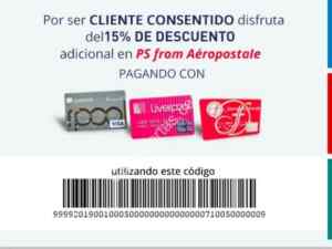 Este inicio de año recibirás 15% de descuento adicional en PS from Aéropostale usando el cupón de Liverpool y pagando con Tarjetas Liverpool y Fábricas de Francia. Esta promoción es válida 1 de enero al 28 de febrero del 2019. La imagen del código pueden descargarla de esta publicación. No se acumula con otras promos o descuentos.