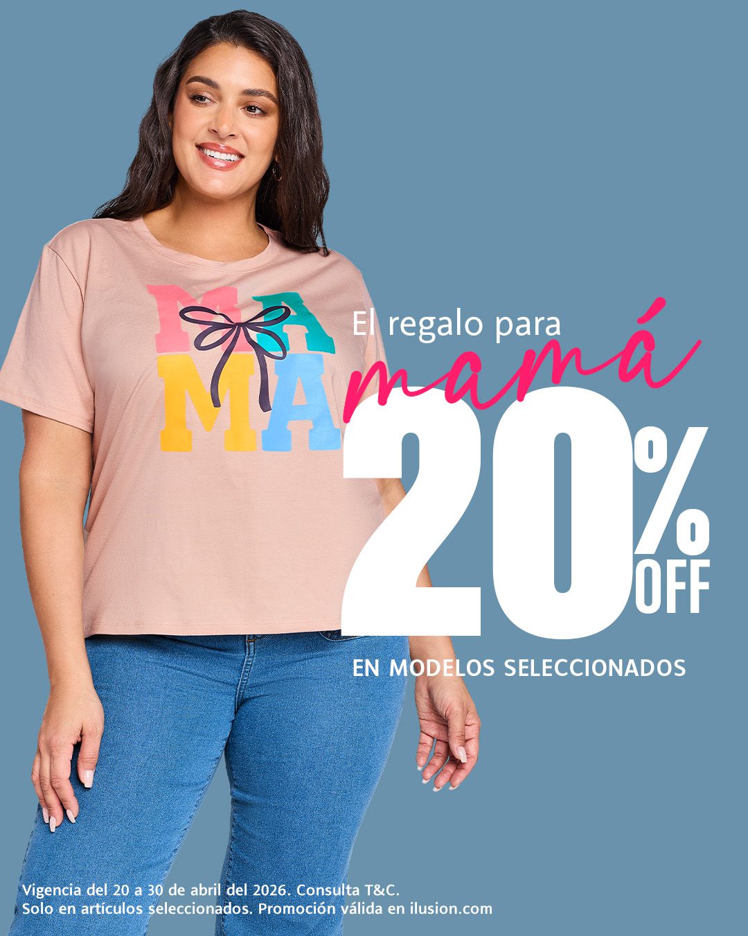 Desde el lunes 20 y hasta el jueves 30 de abril de 2026, estará la promoción El Regalo para mamá por el Día de las Madres, de las tiendas de lencería, ropa casual y belleza Ilusión, en la que encontrarás un 20% de descuento en modelos seleccionados; la promoción es válida solo en su sitio de Internet www.ilusion.com/especial-mamas/.