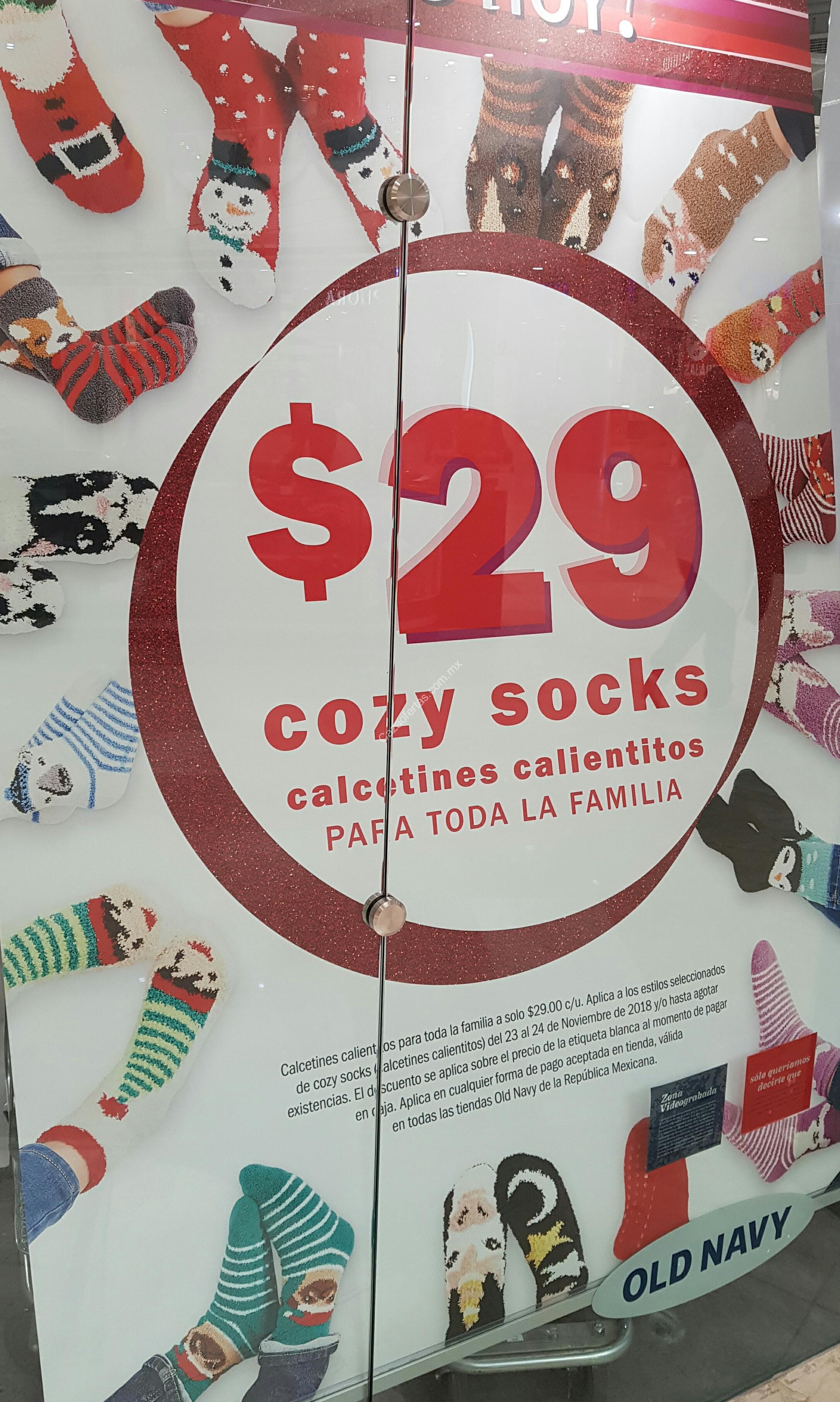 Acabo de ver que en tiendas Old Navy tienen calcetines calientitos para toda la familia como los que se ven en la imagen a solo $29 pesos cada uno. Hay varios calcetines alusivos a la época navideña y más.