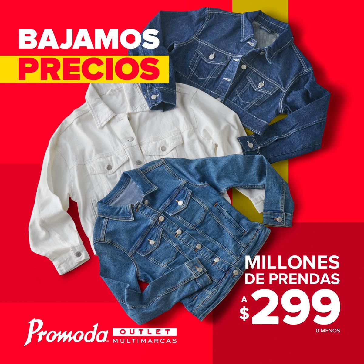 Las tiendas de ropa, calzado y accesorios de moda Promoda publicaron su promoción Bajamos los Precios, en la que encontrarás millones de Prendas a $299.00 o menos; la promoción es válida en sus tiendas Promoda (puedes ubicar la más cercana a tu domicilio en este link: https://promoda.com.mx/tiendas), aplica en productos participantes y estará vigente hasta agotar existencias.
