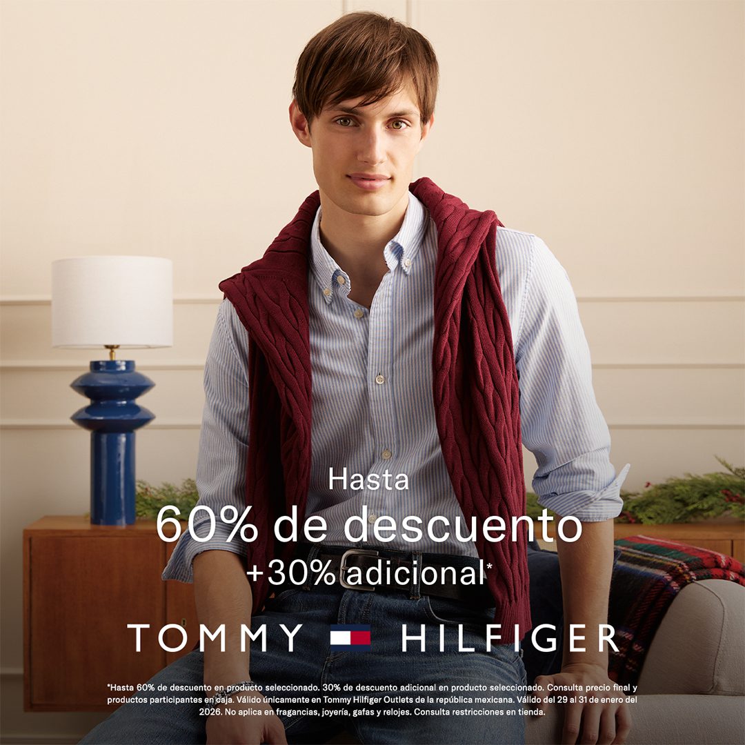 Acabo de dame cuenta que en la tienda de productos de moda Tommy Hilfiger Outlet, está su promoción Ese look que querías, ahora sí, en la que puedes obtener hasta un 60% de descuento + un 30% de descuento adicional; la promoción está vigente del 29 al 31 de enero de 2026, aplica en artículos seleccionados y es válida en sus sucursales físicas Tommy Hilfiger Outlet (las puedes ubicar en este enlace: mx.tommy.com/ubicacion-de-tiendas; debes buscar tipo Outlet).