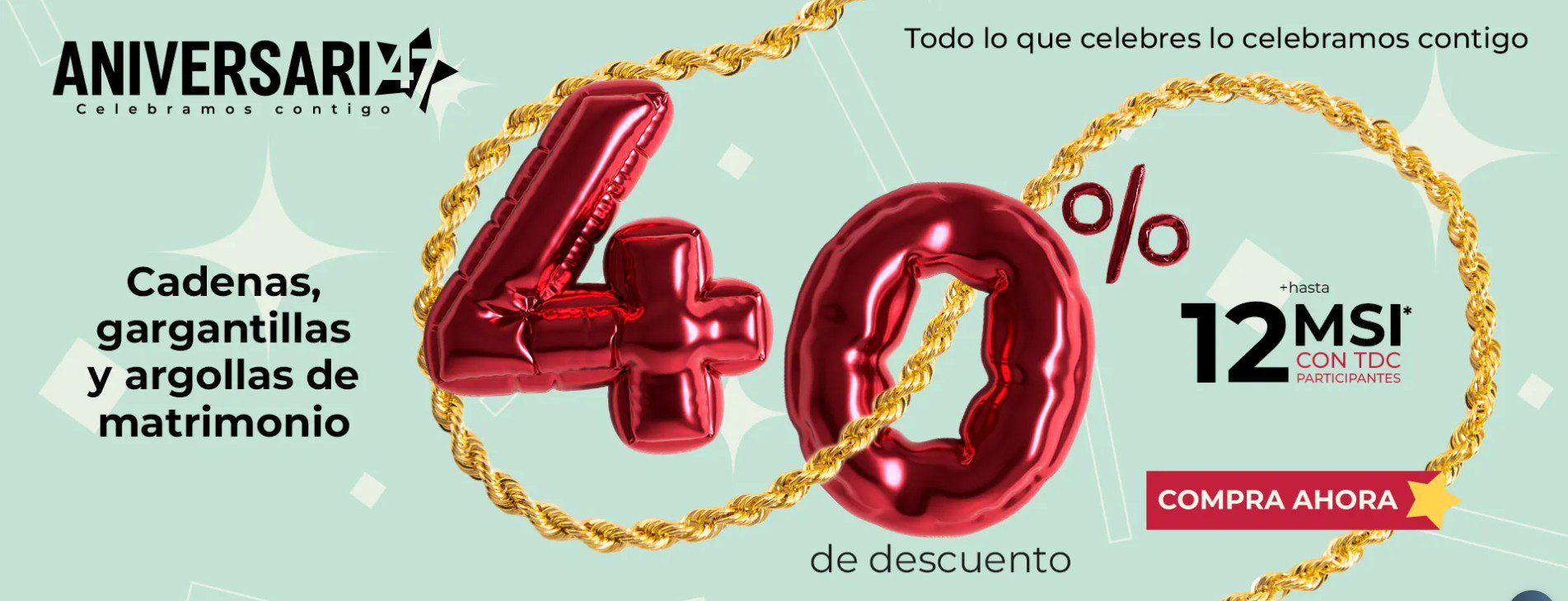 - 40% de descuento + hasta 12 meses sin intereses en Cadenas, Gargantillas y Argollas de Matrimonio
