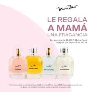 La promoción por el Día de las Madres de las tiendas de calzado Michel Domit, están dando GRATIS una Fragancia de 100 ml en tus compras por $2,499.00 o superiores; la vigencia de la promoción es del 25 de abril al 10 de mayo 2021 o hasta agotar existencias y aplica solo en su página de Internet www.micheldomit.com