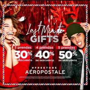 Les comparto la nueva promoción Navideña que tienen Aeropostal. Encontrarán 30% de descuento al comprar 3 prendas, 40% de descuento al comprar 4 prendas y 50% de descuento al comprar 5 prendas. Esta promo estará disponible en Boutiques, Liverpool y Fábricas de Francia. La vigencia es del 18 al 24 de diciembre por si aún no completan los regalos.