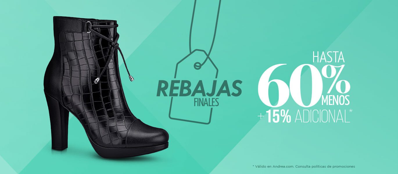 Las tiendas de zapatos, ropa, accesorios de moda Andrea publicaron su promoción de «Rebajas Finales 2021» en la que nos ofrecen hasta un 60% de descuento + un 15% de descuento adicional; la promoción es válida en artículos seleccionados, aplica solo en su tienda en línea mx.andrea.com y estará vigente hasta el 21 de febrero de 2021.