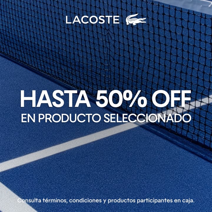 Estoy viendo que la marca de polos, ropa, zapatos, relojes, bolsos, fragancias y ropa deportiva Lacoste, dio a conocer su promoción de Rebajas, en la que te estarán dando hasta un 50% de descuento; la promoción aplica en productos seleccionados, es válida de manera en su página de Internet (www.lacoste.com/mx/) y en sus Boutiques físicas.