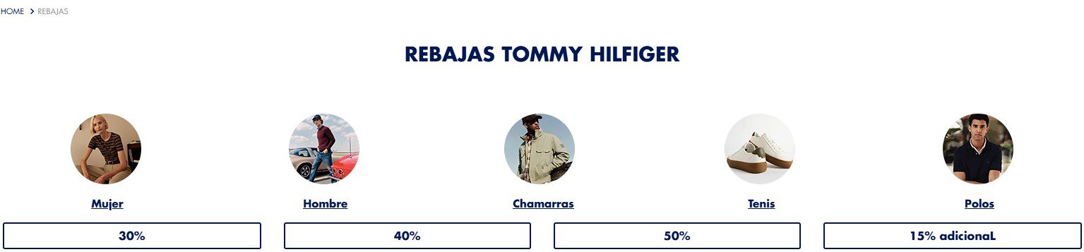 Acabo de dame cuenta que en la tienda de productos de moda Tommy Hilfiger, está su promoción de Rebajas, en la que puedes obtener hasta un 50% de descuento + un 15% de descuento adicional; la promoción aplica en artículos seleccionados y es válida en sus sucursales físicas y en su página web mx.tommy.com y en su App (que puedes descargar desde ese mismo sitio).