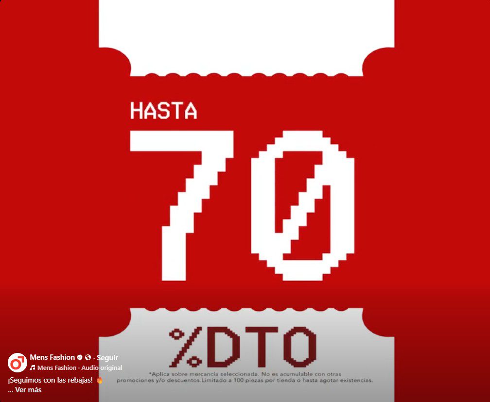 Me acabo de enterar que en las tiendas de ropa para hombres Men’s Fasion, está su promoción de las Segundas Rebajas, en la que encontrarás hasta un 70% de descuento y más; la promoción aplica en mercancía participante, está limitado a 100 piezas por tienda o hasta agotar existencias y es válida en su tienda en línea www.mensfashion.com.mx/sale_ y en sus sucursales físicas.