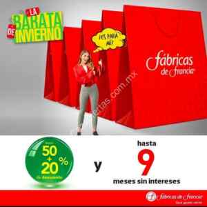 En Fábricas de Francia están las Terceras Rebajas Barata de Invierno. Si aún necesitan ropa de invierno, ahorita están dando hasta 50% de descuento + 20% adicional y 9 meses sin intereses en diferentes marcas y artículos dentro de la tienda. La promoción estará vigente hasta el 31 de enero, por si quieren ir a echar un vistazo.