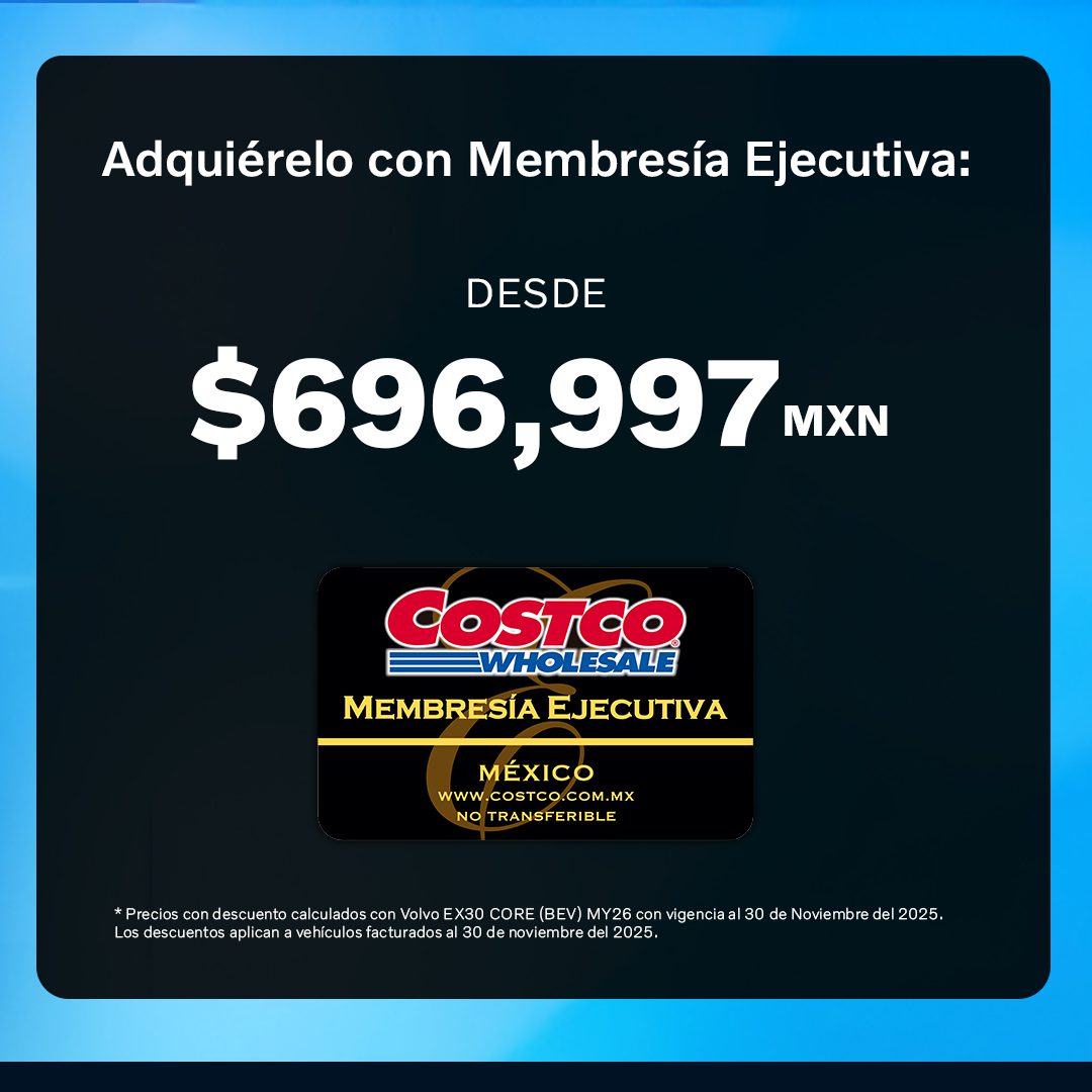 Me acabo de enterar que Volvo Car México en coordinación con Costco, anunciaron su promoción Tu Membresía Costco es tu Llave para tu nuevo Volvo, con la que podrás adquirir tu Auto Volvo desde $696,997.00 con tu Membresía Costco Ejecutiva, o desde 721,999.00 con tu Membresía Costco Regular; la promoción aplica en modelos EX90, XC60 Y XC90 MY26; EX40, EX90, Y EC40 MY25, y es válida al 31 de diciembre de 2025. Deberás registrarte previamente en su sitio web www.volvopremiumsale.com.mx/costco.