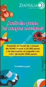 Esta es la promoción de Navidad que tiene el centro comercial Zentralia Coacalco. Realicen compras de $5,000 pesos ó más y podrán obtener un juguete de regalo con valor de hasta $500 pesos. Sólo están manejando 45 artículos, así que si les interesa acérquense a la plaza y lleven sus facturas de compra.
