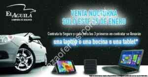 Hoy 25 de enero hay Venta Nocturna de Seguros El Águila con las siguientes promociones al contratar un seguro de auto: