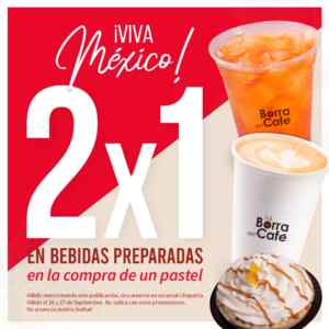 Hoy jueves 17 de septiembre de 2020 termina la promoción «Viva México» de las cafeterías La Borra del Café, en la que te darán un 2×1 en Bebidas preparadas en la compra de un Pastel; la promoción es válida únicamente en su sucursal Chapalita y deberás mencionar la publicación para obtener la oferta.