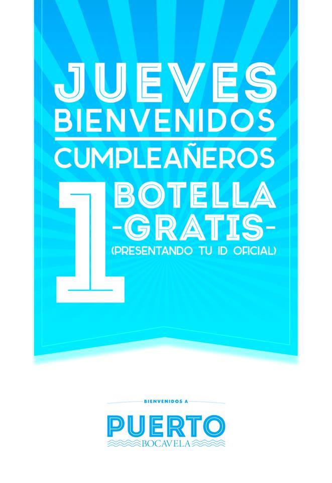 Hoy es primer jueves de mes y en el restaurante de mariscos Puerto Bocavela tienen una buena promoción para cumpleañeros: Si cumples años en diciembre, preséntate hoy jueves en el restaurante con tu identificación oficial y te dan una botella gratis.