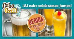 Hola les paso este cupón de Facebook que tienen los restaurantes Cabo Grill en el que les dan 2 bebidas gratis en consumo de $299. Entren a la página de la oferta, le dan al botoncito y les llega el cupón directo a su correo. Presentan el cupón ya sea impreso o en el cel y les hacen válida la promoción.